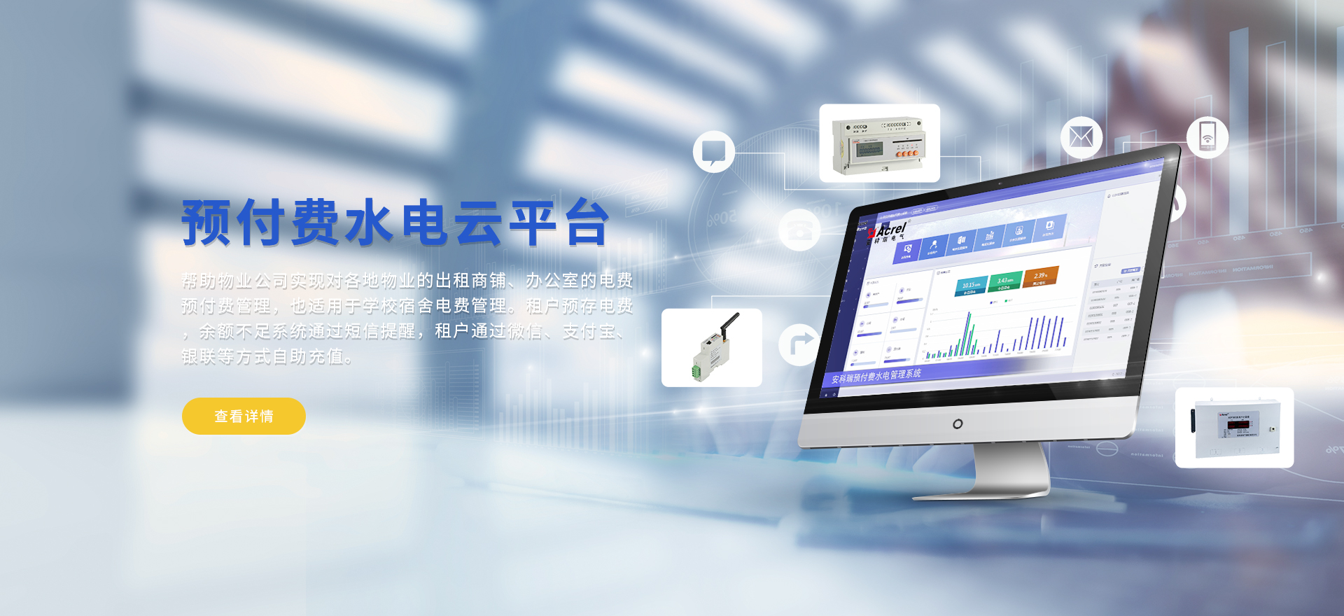 安科瑞提供的解決方案包括Acrel-EIoT能源物聯網云平臺、變電所運維云平臺、安全用電管理云平臺、環保用電監管云平臺智慧消防云平臺、能源管理云平臺、工業企業能源管控平臺、遠程預付費云平臺、餐飲油煙監管云平臺、電動汽車/電瓶車充電樁收費管理云平臺、電力監控/無線測溫系統、電能質量治理系統、電氣火災監控系統消防設備電源監控系統、防火門監控系統、應急照明和疏散指示系統、智能照明控制系統、醫用隔離電源絕緣監測系統等,幫助用戶實現能源智能化、可視化、精細化管理,提高用能效率和用能安全,為企業節能降耗和實現能源數字化建設提供數據服務。